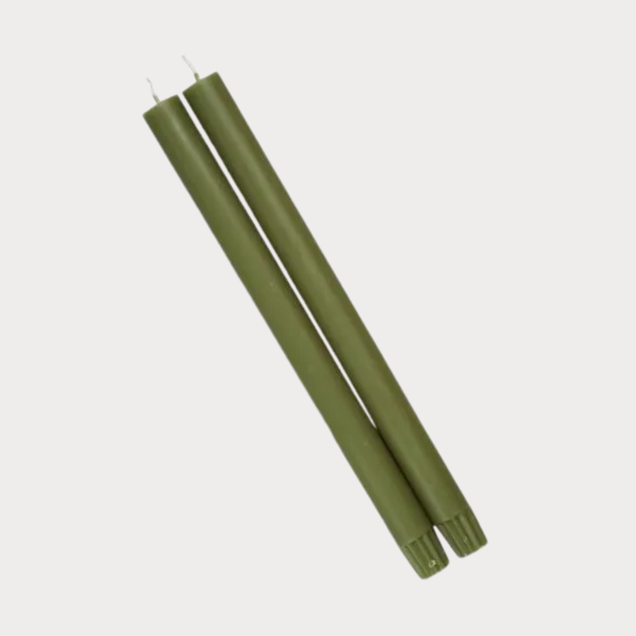 Two elegant sage tapered dining candles are moulded using traditional techniques for rich, solid colour and a smooth, clean silhouette.