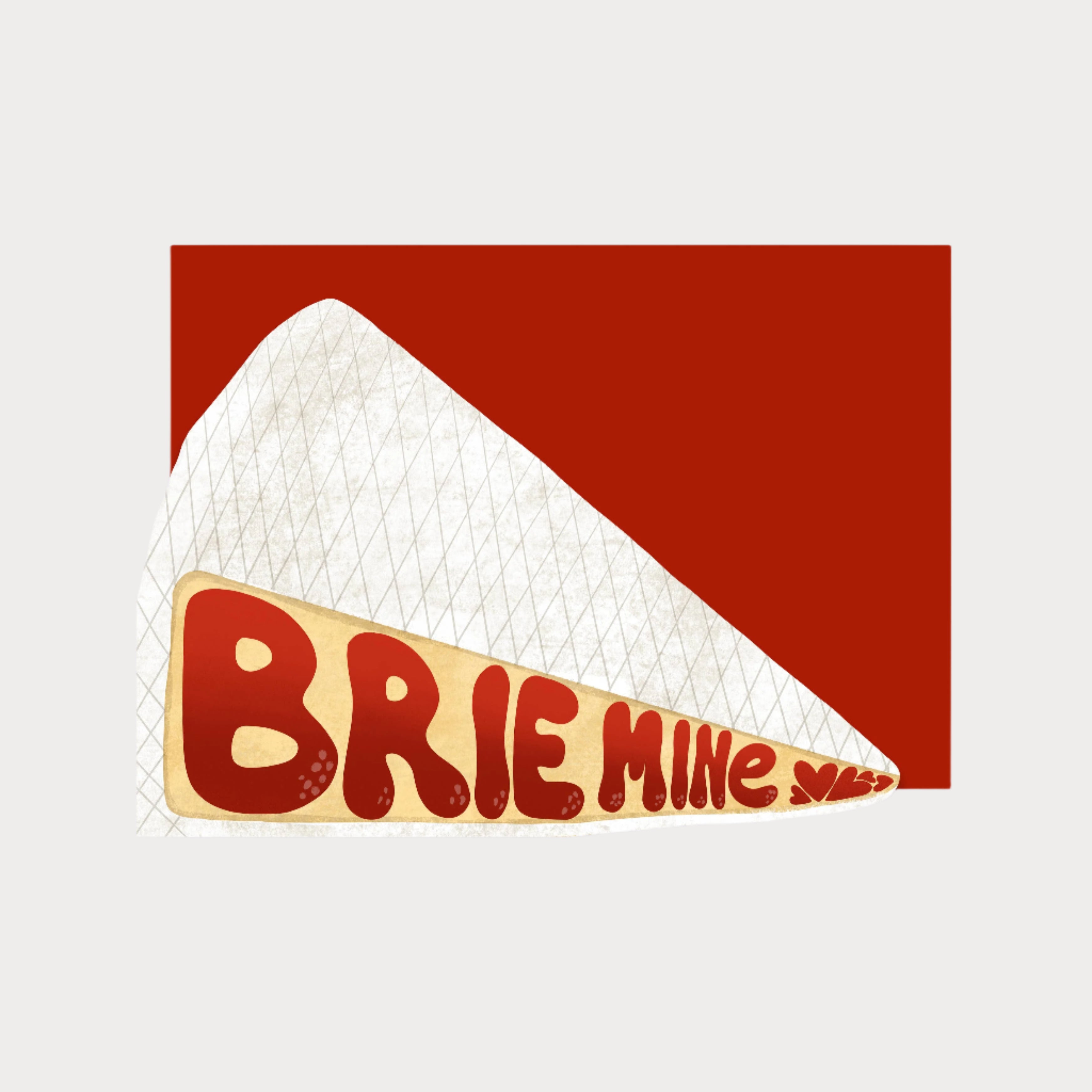 The design features charming retro-style typography spelling out "brie mine" - bringing together vintage vibes and dairy-based devotion in one delightful package.